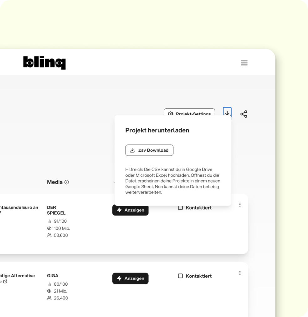 Unsere KI findet für dich die passenden Podcast-Hosts, analysiert, worüber sie wirklich sprechen – und schreibt personalisierte Email-Pitches, die ankommen. Statt Gießkanne: Relevanz. Statt schlechter UX: Fokus. blinq macht Podcast-Reichweite skalierbar.
